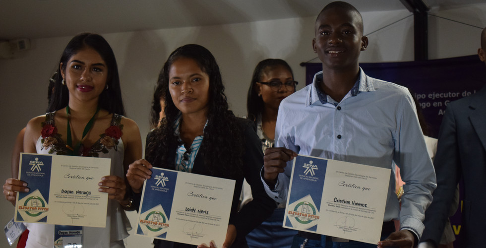 Edgar Adrián Zambrano, Coordinador de Relaciones Internacionales y Cooperación del SENA, Belisario Marín, reconocido empresario del Valle del Cauca, César Alveiro Trujillo Director Regional del SENA y la instructora de emprendimiento del CGTS Sara María Hurtado, también hicieron parte del comité evaluador del evento que se realizó el pasado miércoles 26 de julio en la ciudad de Cali.